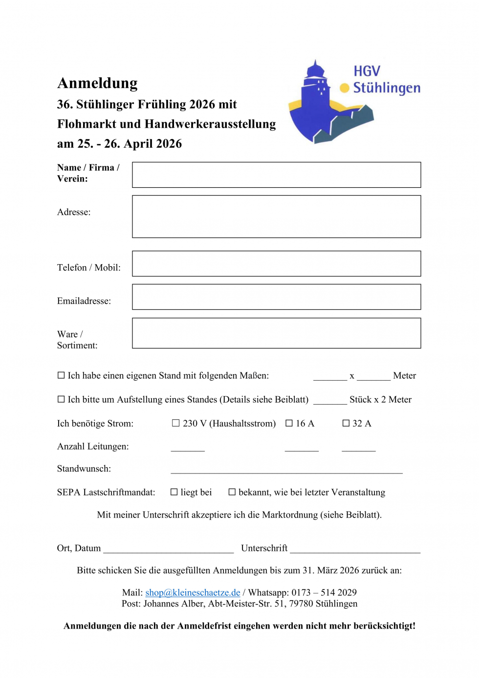 Anmeldeformular Stühlinger Frühling 2026